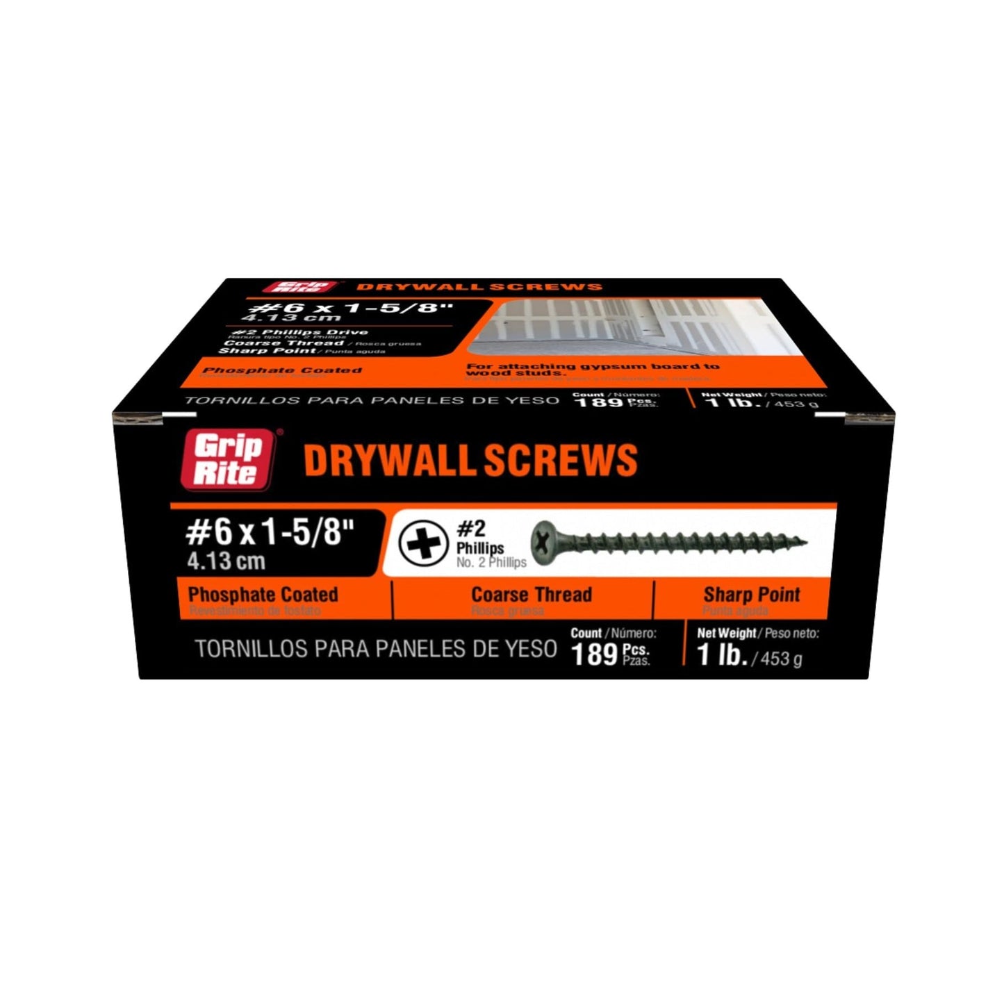 GRIP-RITE 158CDWS1 #6 x 1-5/8 in. #2 Phillips Bugle Head Coarse Thread Drywall Screws (1 lb.) (189/Pack)