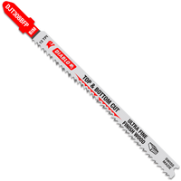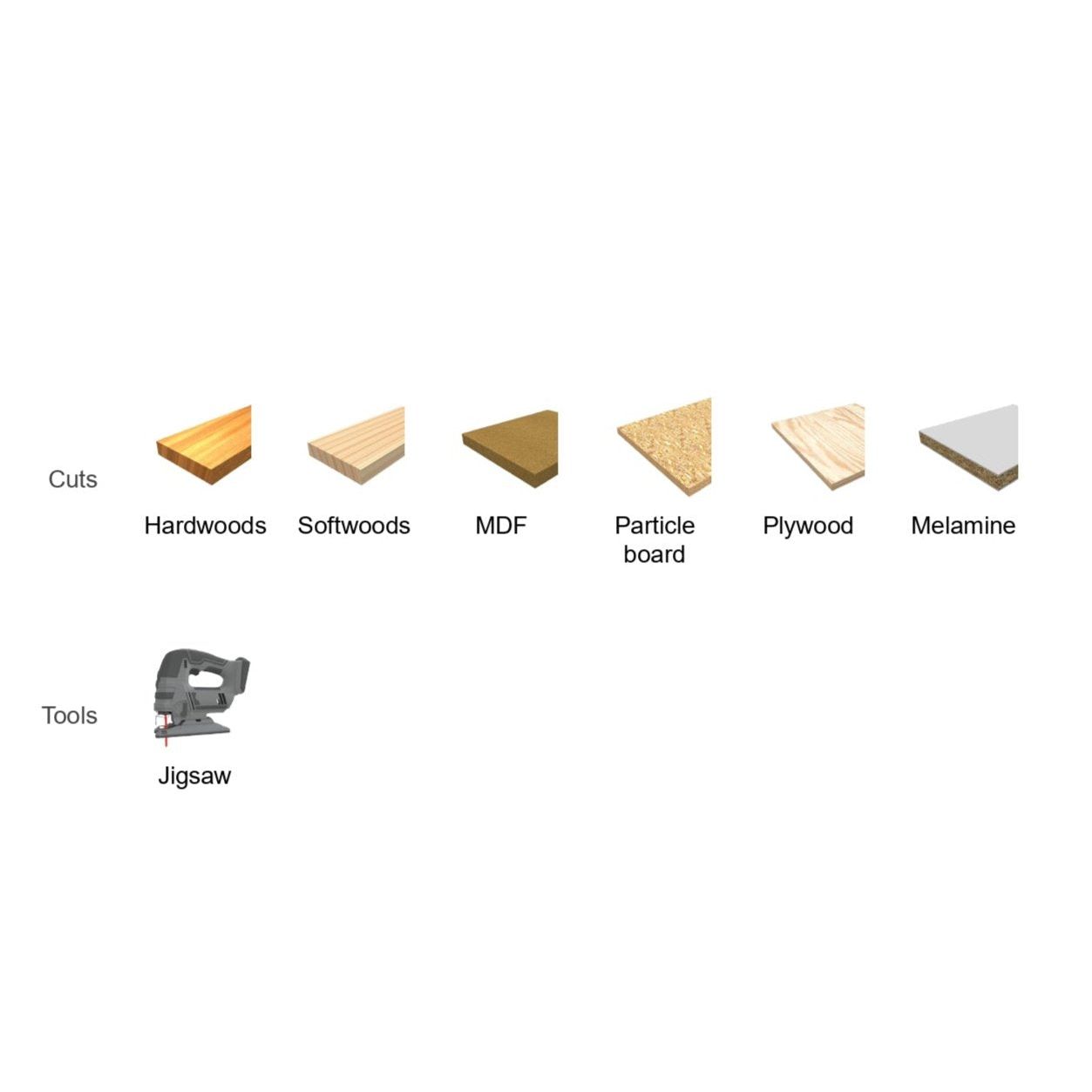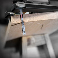 Diablo’s bi-metal teeth jig saw blades are specifically designed for maximum durability, cut quality and longer life in ultra-fine finish wood applications. These high-performance blades feature an ultra-hardened cutting edge to deliver up to 5X longer life than standard blades. The optimized blade design provides precise cuts in straight, angled and intricate curved cutting applications. A bi-directional tooth design features teeth facing in opposite directions at each end of the blade to deliver ultra-fine finishes on the top and bottom of the wood. T-shank design fits all combo and most U-shank cordless and corded jig saws.