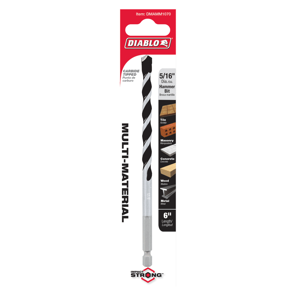 DIABLO DMAMM1070 5/16 in. x 4 in. x 6 in. Multi-Material Carbide-Tipped Hammer Drill Bit