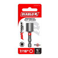 Diablo's range of magnetic nut drivers delivers maximum performance and extreme durability in driving hex nuts or self-tapping screws. A high-strength, permanent magnet provides a secure, anti-wobble grip when fastening screws and nuts into a variety of applications. MaxTorque Zone ultimate torque resistance absorbs torque for less stress at the tip when tightening and removing nuts and screws. This range is Impact Strong™, delivering increased shank stability and durability in cordless and corded impact and drill drivers.