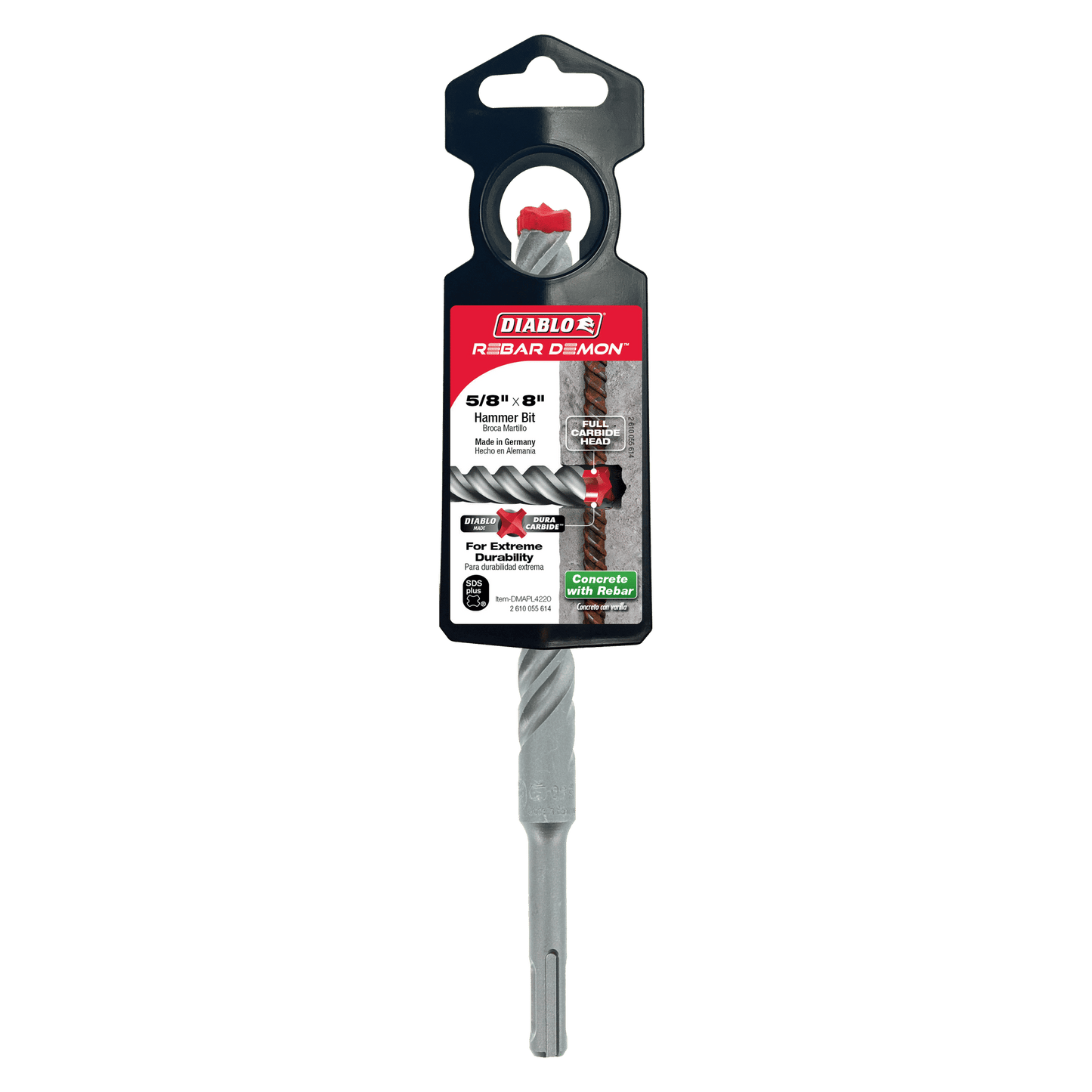DIABLO DMAPL4220 5/8 in. x 6 in. x 8 in. Rebar Demon™ SDS-Plus 4-Cutter Full Carbide Head Hammer Drill Bit